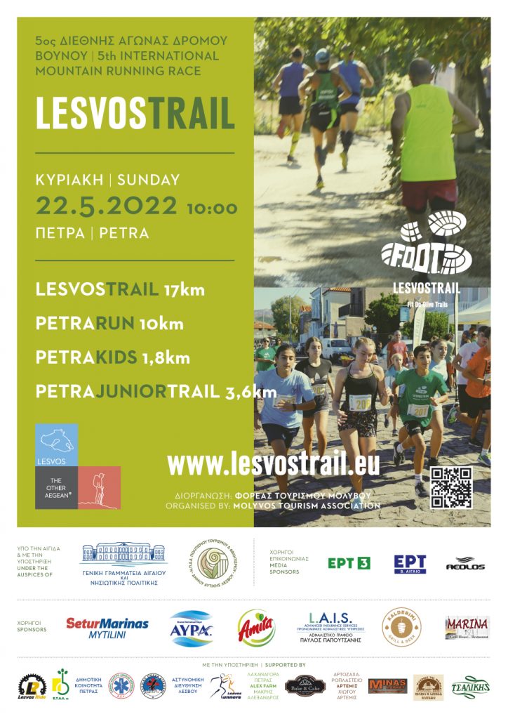 Οι διεθνείς αγώνες δρόμου βουνού Lesvos Trail, θα πραγματοποιηθούν την Κυριακή 22 Μαΐου 2022 στην Πέτρα της Λέσβου. Ένα μεγάλο αθλητικό γεγονός και μία συλλογική προσπάθεια φορέων του νησιού για την ανάδειξη του αθλητισμού στην μοναδική Λέσβο!!!