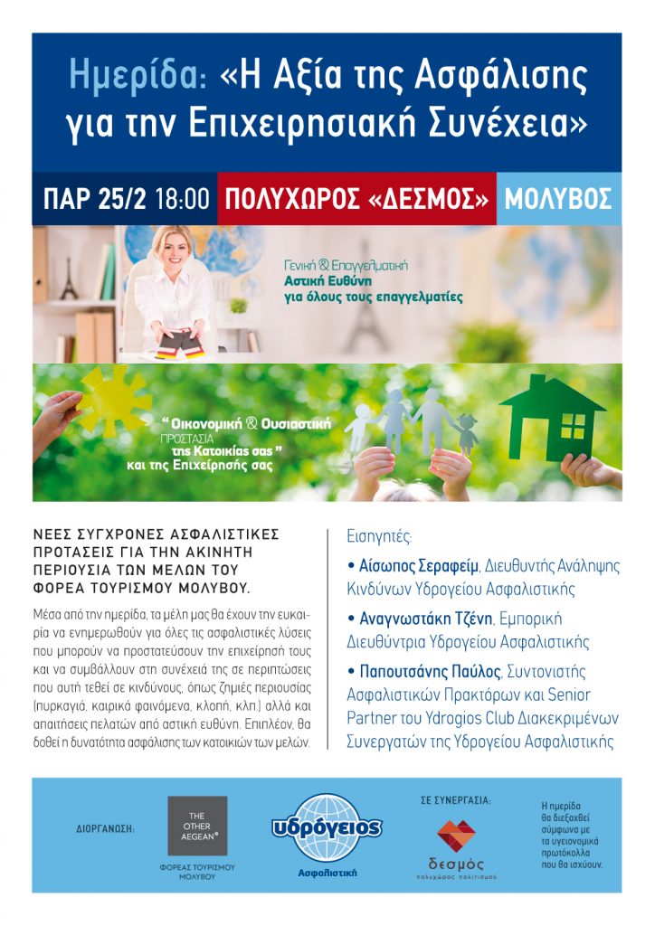 The scientific meeting is also being held under the aegis of the Secretary General of the Aegean and Island Policy, the Region of the North Aegean Sub-regional Administration of Culture, the Cultural Legal Entity under Public Law of the Municipality of West Lesvos, the Lesvos Local Development Company (ETAL)
